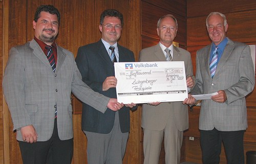 Vorstandsvorsitzender Herbert Hinterschitt unterstrich den Stellenwert des Kultur-Umwelt-Sozial-Sponsorings(KUSS) der Volksbank. Da auch Zwingenberg zum "Serviceland" der Bank gehöre und die Festspiele ein großes Ereignis für viele Kulturinteressierte und den Tourismus in der Heimat darstelle, sei sich der Vorstand der Volksbank Neckartal sicher, dass das Geld gut angelegt sei. Seit vielen Jahren gehöre es zur guten Tradition, diese bedeutsame Veranstaltung zu unterstützen, dies wolle man auch in der Zukunft so beibehalten. Seine beiden Vorstandskollegen Ekkehard Saueressig und Friedrich Heuser sähen dies ebenso.
