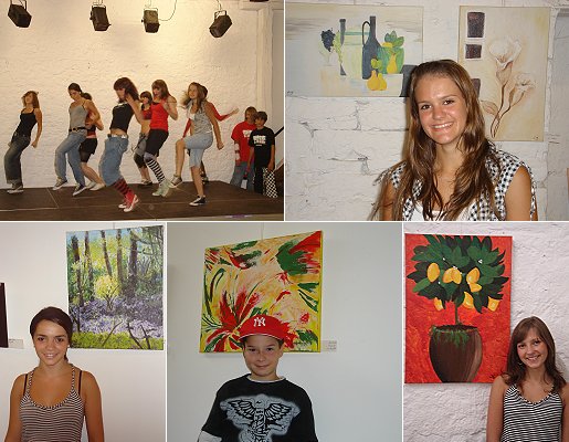 Ausdruck von Leben unterschiedlicher Temperamente Die „Dance & Act AG der Realschule Eberbach“ unter Leitung von Christine Gümbel, Lirike Neziraj mit impressionistischem Werk (links); Christina Stork mit filigraner Kunst, Jan Wirth mit einem Bild voller starker Farben, welches er seiner Mutter zum Geburtstag schenkte sowie Irina Gutmann neben ihrem Geschaffenen mit Zitronen (rechts). (Fotos:Gündling)(ag) In der Galerie ARTgerecht gab es heute eine Ausstellung besonderer Künstler, nämlich junger Menschen vieler Nationen, die mit ihrer Kunst Leben voller Farben zeigten. Das Projekt „Mädchen und Kunst“ in Kooperation des Jugendreferats Eberbach, der Galerie unter Juliane Kehm, dem Künstler Manfred Garstka sowie Mitwirkender hatte einen Bilderzirkel zur Verwirklichung gebracht, der voller Farben, Sehnsüchte und einem Blick in die Zukunft geriet, wie sie wohl gerade junge Menschen haben, deren Leben noch nicht entrollt ist. – Zur Vernissage durchbrach auch die Tanzgruppe unter der Lehrangestellten Christine Gümbel vom „Dancing Act“ mit tollen Darbietungen zwischen Hip Hop und Street Style Grenzen zwischen Schulstufen und Anschauungen. Und Günter Wiedemer, welcher Bürgermeister Bernhard Martin vertrat, unter dessen Schirmherrschaft das Projekt steht, betonte in seiner Begrüßung, dass die Begegnung der jungen Leute verschiedener ethnischer Gruppen helfe, Vorurteile abzubauen.