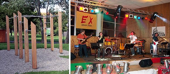 Schulfest mit Übergabe einer neuen Kletteranlage Im Rahmen eines Schulfestes wurde die neue Kletteranlage (links) auf dem Schulgelände der Winterhauchschule übergeben. Für Stimmung sorgte dann in der Turnhalle die Band „EX“. (Fotos: Baumgartner)