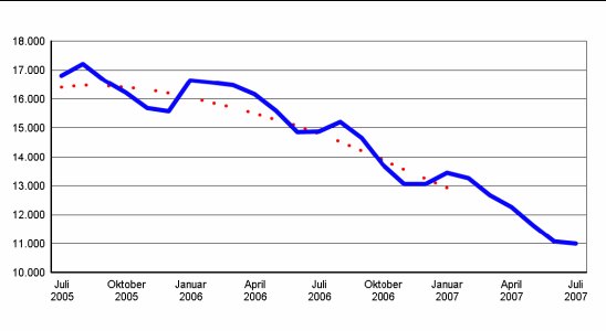 Arbeitslosenquote auf niedrigstem Juliwert seit 10 Jahren Bestand an Arbeitslosen(jc) (aa) Zum Ende des Monats waren 10.994 Bewerberinnen und Bewerber arbeitslos gemeldet. Das bedeutet nochmals einen Rückgang um 0,6 Prozent gegenüber dem Vormonat. Gegenüber dem Vorjahr ist ein Rückgang um 26,2 Prozent zu verzeichnen und das heißt, dass fast 3.900 Menschen weniger arbeitslos sind als im Juli 2006.