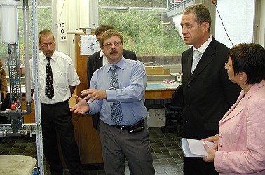 Hessischer Wirtschaftsminister zu Besuch bei Quint sdi Bei einem Rundgang zeigte sich der Minister (2.v.r.) beeindruckt von der Technik, die Geschäftsführer Rainer Olbert an verschiedenen in Bau befindlichen Anlagen erläuterte. (Foto:Claussen)
