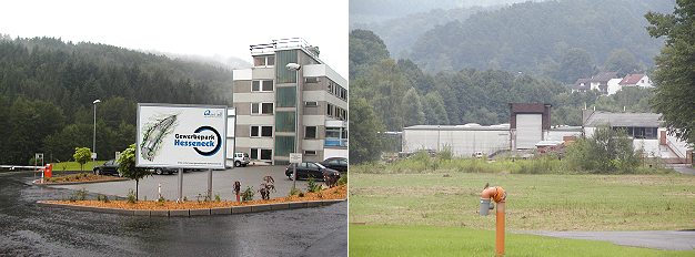 70.000 Quadratmeter Gewerbefläche für Investoren (Fotos:Claussen)(jc) In den letzten Wochen hat sich auf dem Gewerbe-Areal zwischen Friedrichsdorf und Kailbach einiges getan. Die bisher im Verwaltungsgebäude der ehemals dort ansässigen Styroporfabrik produzierende Firma Quint sdi hat den 70.000 Quadratmeter großen hessischen Teil des Geländes samt Gebäuden erworben und möchte dort im Oktober den "Gewerbepark Hesseneck" eröffnen. Während sich auf dem badischen Teil bereits seit vielen Jahren metallverarbeitende Unternehmen etabliert haben und teilweise auch ihre Gebäude saniert haben, waren die brach liegenden Werkshallen im hessischen Ittertal lange dem Verfall preisgegeben und markierten einen "Schandfleck" in ansonsten idyllischer Umgebung. Nun läuft ein zielgerichtetes Sanierungsprogramm, das Quint-Geschäftsführer Michael Braner jetzt gegenüber dem Eberbach-Channel erläuterte. Zufahrten wurden erneuert und repräsentative Parkplätze angelegt. Einen Teil der ehemaligen Produktionshallen möchte die Firma Quint bis zum Jahresende selbst für die Montage ihrer Systeme für die Druckindustrie beziehen. Ein großer Teil der insgesamt 8000 Quadratmeter großen Hallenfläche soll aber an Investoren vermietet werden, die sich im Gegenzug für günstige Mietkonditionen möglichst an den Sanierungsarbeiten beteiligen sollen. Einige Firmen nutzen dieses Angebot bereits. Die noch recht trostlos wirkenden Gebäude sollen so in den nächsten Monaten nach und nach zu neuem Glanz und Nutzen kommen. Vordringlich ist dabei zunächst die Reparatur der Hallendächer, die fast abgeschlossen ist. Früher waren bis zu 200 Menschen im durch die Landesgrenze zerschnittenen Industriegebiet beschäftigt. Eine vergleichbare Zahl peilt Michael Braner mit dem ehrgeizigen Projekt wieder an. Etwa ein Viertel davon ist bereits erreicht.