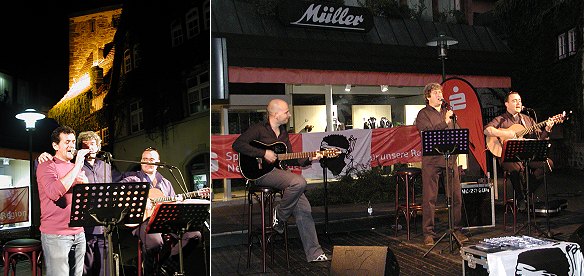 (jc) Einen wunderbaren Abend mit Batti Profizi und seinen korsischen Chansons erlebten die Besucher gestern Abend auf dem Lindenplatz. Auch das Wetter spielte nach einer miesen Woche wieder mit und vermittelte mit den Klängen von der Mittelmeerinsel einen Hauch von Urlaubsstimmung. Zwar kamen nicht so viele Besucher wie beim Auftakt zur Konzert-Reihe am vergengenen Samstag, der stimmungsvollen Atmosphäre schadete es aber nicht. Begleitet wurde der Sänger und Komponist von den Gitaristen Richard Romani und Francois Pesce, die ihn auch gesanglich unterstützten.