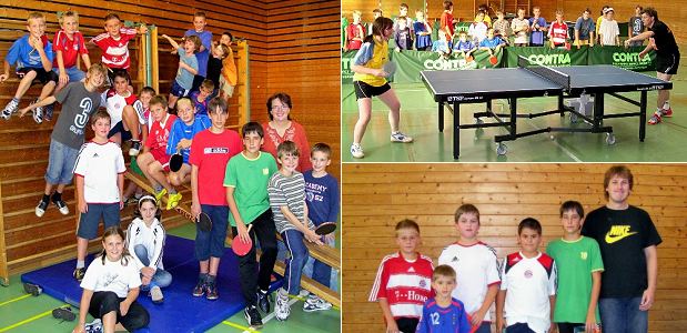 (jc) (crö) Es war einiges los am vergangenen Samstag in der Mehrzweckhalle. Die KG Kuckuck Jugend veranstaltete im Rahmen des diesjährigen Eberbacher Ferienspaßprogramms ein Tischtennisturnier. Bereits eine Viertelstunde vor Turnierbeginn trafen die ersten Teilnehmer ein um sich warmzuspielen. Kurz nach 17 Uhr ging es dann los: 22 Jungs und zwei Mädchen im Alter von 9-14 Jahren kämpften um die ersten Plätze und die damit verbundenen Preise. Die jeweils ersten vier der beiden Vorrundengruppen qualifizierten sich für die Finalspiele, in denen sich Dennis Diemer vor Christian Grein als Sieger durchsetzte. Eine besondere Überraschung gab es für die Teilnehmer des Turniers: Peter Bayer und Ina Gerbracht vom TV Eberbach präsentierten in einem Schaukampf die Sportart und brachten diese so den inter-essierten Jugendlichen näher.