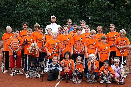Spiel, Spaß und Tennis (Foto: privat)(bro) (jsch) In der letzten Ferienwoche trafen sich 26 Kinder im Rahmen des Ferienprogramms zum Tenniscamp auf der Anlage des TC Blau- Weiß. Begonnen wurde um 9 Uhr. Mittagessen gab es im Clubhaus, und der Tennistag endete um 15 Uhr. Zunächst wurden die Kinder von den Trainern Axel Stilling, Martina Smolka und Nina Reumel nach Alter und Können in Gruppen eingeteilt. Schwergewicht aller Aktivitäten war Tennis, aber dazwischen sorgten auch Ball- und Geschicklichkeitsspiele für großen Spaß. Montags trotzten alle zunächst dem Nieselregen, man musste aber dann nachmittags doch in die Halle des Palestra ausweichen, wo Fußball und Hockey angesagt waren. Die folgenden Tage verliefen programmgemäß, und am Mittwoch konnte die angekündigte Kanutour nach Hirschhorn stattfinden. Unter großem "Hallo" fand donnerstags nach dem Tennis eine Funolympiade statt mit Teebeutelweitwurf, Erbsenweitspucken, Bandenkegeln u. ä.. Mit einem Grillfest am Freitag, wozu alle Eltern beitrugen, ging eine gelungene und erlebnisreiche Woche zu Ende, wobei besonders die Harmonie auffiel, mit der Jungen und Mädchen verschiedenen Alters zusammen spielten und ihren Spaß hatten.