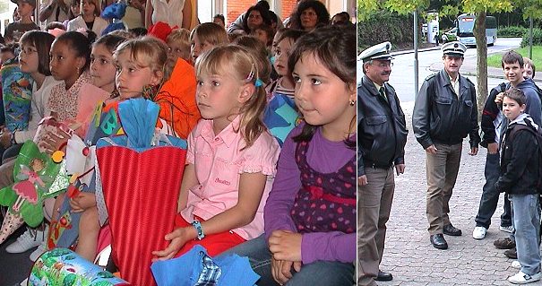Für alle Erstklässler begann der erste Schultag mit einem Gottesdienst und einer Einschulungsfeier in der Aula der Steige-Grundschule beziehungsweise in der Mehrzweckhalle der Dr.-Weiß-Schule. Seit heute sind die Schülerinnen und Schüler, teilweise mit gelben Mützen, auf den Schulwegen unterwegs. Weil sie sich noch nicht so sicher im Straßenverkehr bewegen wie Erwachsene, sollten andere Verkehrsteilnehmer in den nächsten Wochen besondere Rücksicht nehmen. Die Eberbacher Polizeibeamten begleiteten die Einschulungstage und den allgemeinen Schulbeginn wieder mit besonderem Augenmerk auf die Verkehrssicherheit um die Schulen.