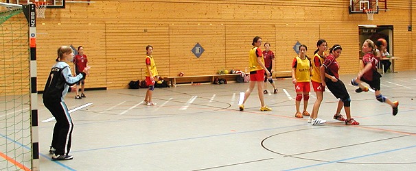(jc) Nach der Auftaktniederlage in Walldorf am vergangenen Sonntag konnte die weibliche C-Jugend der SG Handball gestern im ersten Heimspiel der Leistungsklasse gegen den TSV Germania Malsch ihren ersten Saisonsieg einfahren. In allen Belangen verbessert präsentierte sich das Team von Katrin Kappler und Wolfgang Brose ihren Anhängern in der Hohenstaufenhalle mit unbändigem Siegeswillen . Vor allem die Abwehrarbeit der SGH lies bei den Gästen in diesem Spiel zu keiner Zeit Siegeschancen aufkeimen. Mit dem Halbzeitstand von 16:8 war Malsch noch gut bedient, da die Mädchen aus Waldbrunn und Eberbach die eine oder andere Variante aus den Trainingsstunden umzusetzen versuchten und Torchancen ausließen.