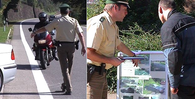 Mit bereits acht Kontrollaktionen in diesem Jahr stellen sich die Eberbacher Beamten zusammen mit ihren Kollegen von der Verkehrspolizei Heidelberg dieser Entwicklung auf den Unfallstrecken entgegen. Teils kombiniert mit Geschwindigkeitsmessungen, geht es an diesen Kontrollstellen nicht nur um Ahndung sondern insbesondere darum, mit den Bikern über die landesweit festgestellten Hauptunfallursachen ins Gespräch zu kommen: Zu schnelles Fahren, hauptsächlich in Kurven, sowie Überholen in unklarer Verkehrslage und an unübersichtlichen Stellen. Es kommt dabei deutlich zum Ausdruck, dass Straßen keine Rennstrecken sind und es dort weder Sturzräume gibt noch Knautschzonen wirken. Wer sich zwischen Leitplanken, Bordsteinen und Gegenverkehr bewegt, sollte daher nicht allein auf Glück und Talent vertrauen.