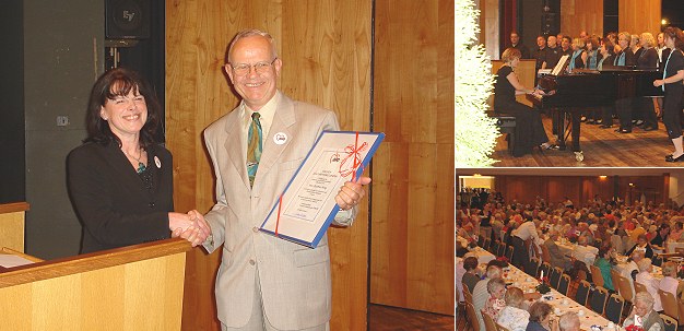Ein Nachmittag mit Herz: 40. AWO-Seniorentreffen und Ehrung von Günther Ihrig Barbara Krawczyk bei der Ehrung von Günther Ihrig für seine langjährige mildtätige Arbeit für die AWO (links). Karin Conrath mit den "Riverside Gospelsingers", Besucher des Seniorennachmittages. (Fotos:Gündling)(ag) Nicht nur zu ein paar unterhaltsamen Stunden bei Kaffee, Kuchen und einem bunten Programm, sondern zu Stunden des Miteinanders traf sich die Gemeinschaft der Arbeiterwohlfahrt zum 40. Seniorennachmittag, bei dem sich die älteren Menschen, Ehrenamtlichen und Ehrengäste heute in der Stadthalle eingefunden hatten. Gekrönt wurde diese Zeit mit der Ehrung von Günther Ihrig, dessen Dienste für den mildtätigen Verband nun durch die Ernennung zum Ehrenvorsitzenden erhoben wurden.