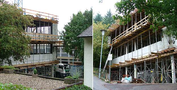 Zügel der Stadtverwaltung gelockert - freiere Hand beim Gymnasiumbau Die Rohbauarbeiten, hier am Musiktrakt des Gymnasiums, sind bald fertig. (Fotos:Richter)(hr) Gut im Zeitplan liegen die Bauarbeiten am Hohenstaufen-Gymnasium. Das berichtete Stadtbaumeister Manfred Janner vorgestern im Gemeinderat. Die Rohbauarbeiten sollten bis Ende Oktober fertig sein, und voraussichtlich im November werde es ein Richtfest geben.
