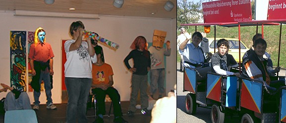 Der Tag begann mit einem Erntedankgottesdienst im festlich geschmückten Luthersaal. Er wurde vom Posaunenchor Aglasterhausen/Schwarzach sowie an der Orgel von Gottfried Broschwitz begleitet. Pfarrerin Erika Knappmann dankte in Ihrer Predigt Gott für alle guten Gaben, die symbolisch vor dem Altar aufgebaut waren. Zum Erntedank führten Bewohnerinnen und Bewohner einen Tanz vor dem Altar auf. Anschließend herrschte auf dem gesamten Gelände des Schwarzacher Hofes ein gewohnt buntes Festtreiben. Mit der bewährten Mischung aus Information und Unterhaltung hatten die Johannes-Anstalten wieder einmal in Schwarze getroffen. Entsprechend positiv fällt auch in diesem Jahr das Resümee von Haupt-Organisator Gottfried Broschwitz aus: "Wir gehen davon aus, dass wieder 2.000 Besucher da waren." Besonders freut er sich über das treue Stammpublikum. Mehr und mehr werde das Erntedank- und Herbstfest auch zum Wiedersehenstag von Ehemaligen, seien es Mitarbeiter oder Bewohner und deren Angehörigen. Stets umlagert waren die zahlreichen Stände mit einem üppigen Angebot an Kulinarischem und Selbstgemachtem. Viel zu sehen, hören, riechen, schmecken und fühlen gab es im Sinnesgarten. Vor allem im und rund um das "Klanghaus" gab es viel auszuprobieren. Ungebrochener Beliebtheit erfreuten sich auch Kutsche und Minibahn, die fast pausenlos im Einsatz waren. "Poldi" und "Lukas", die beiden braven Haflinger, waren sicherlich froh und erleichtert, als sie am späten Nachmittag wieder in den Stall durften. Ihre Kollegen vom "Therapeutischen Reiten" trugen derweil geduldig viele begeisterte Kinder Runde um Runde durch die Reithalle. Hier gab es auch Vorführungen der Voltigiergruppe. Objekt allgemeiner Bewunderung waren die neuen und dieses Jahr besonders farbenfrohen Künstlertassen und -teller, die im Kunst-Werk-Haus, dem überaus erfolgreichen Projekt für künstlerisch begabte Menschen mit Behinderungen, vorgestellt und zum Verkauf angeboten wurden. Führungen durch die offene Wohngruppe und die Werkstätten wurden gut angenommen. Viel Applaus gab es für die Tanz- und Theater-AG der Schwarzbach Schule unter der Leitung von Annemarie Leitz und ihre "Werk-Schau" in der Aula. Im Infozelt informierten die Fachschule für Sozialwesen, der Geschäftsbereich Wohnen, die Klinik für Kinder- und Jugendpsychiatrie und Psychotherapie sowie die Personalbetreuung der Johannes-Anstalten über ihre Angebote. Die Ausstellung "Die Johannes-Anstalten Mosbach – Von der Kaiserzeit bis zum 21. Jahrhundert" fand im Haus Luther zahlreiche Bewunderer. Erstmals war in diesem Jahr der Ausbildungsbereich Gärtnerei des Berufsbildungswerkes Mosbach mit einer Verkaufsschau vertreten. Zufrieden ist auch Harald Paeper mit dem Erlös seines Flohmarktes zu Gunsten der "Tobi-Schule" für Geistigbehinderte in Indien. Die SF Band Schwarzach, die Fanfarengilde Bad Rappenau und der Musikverein Waibstadt, der trotz einer weiteren Verpflichtung an diesem Tag mit 56 Musikern auf der Bühne stand, hatten nicht nur zahlreiche Zuschauer. Auch die vielen Hobby-Dirigenten auf dem Schwarzacher Hof zeigten wieder, dass sie Rhythmus im Blut haben. Bewährt hat sich auch einmal mehr die Freiwillige Feuerwehr Schwarzach, die bei der Parkplatzregelung stets den Überblick behielt.
