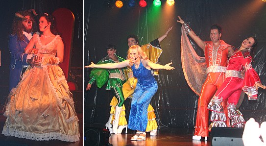 Großer Bogen durch die Welt des Musicals Links Sonja Westermann und Wolfgang Rick in "Die Schöne und das Biest", rechts eine Szene aus "Mamma Mia". (Fotos:privat)