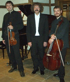 Ein Abend mit Werken von Schubert, Schumann und Dvorák Das Trio "ensemble encore". (Foto:Agentur)(ag) (km) Das Klaviertrio „ensemble encore“ mit Christian Elsas am Klavier, Vítĕzslav Cernoch (Violine) und Tomáš Strašíl am Violoncello gastiert im zweiten Konzert der Festivalreihe der Eberbacher Kunstfreunde, am Freitag, den 26. Oktober 2007, um 20 Uhr, im Eberbacher Evangelischen Gemeindehaus.