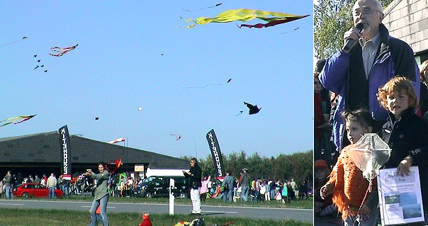 Alle jungen Drachenbauer waren wieder aufgerufen, ihre Eigenbauten einer Jury zur Prämierung vorzustellen. Zu gewinnen gab als Hauptpreis einen Rundflug mit dem Segler über dem Odenwald. Weil den Juroren die Wahl unter den 16 Teilnehmer-Drachen schwer fiel, schlug der BHV-Vorsitzende Günter Lipski schließlich ein Losverfahren vor. Die Nummer 1 zog der fünfjährige Philipp Neumann aus Ilvesheim, der sich demnächst in den Segelflieger setzen darf. Unser rechtes BIld zeigt ihn und seinen kleinen Drachen aus Strohhalmen und Plastikfolie zusammen mit seiner Cousine Soraya und Günter Lipski.
