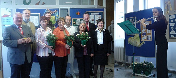 Die Pflege und Betreuung Sterbender – Eine Aufgabe bis zum letzten Augenblick Die Freunde, Förderer und Mitarbeitenden der Hospizbewegung Eberbach und Schönbrunn bei der heutigen Ausstellungseröffnung (links). Theresa Pfeifer unterlegte die Feierlichkeit musikalisch mit schöner Querflöteneinlage. (Fotos:Gündling)(ag) Geht man nach dem Wirken von Mutter Teresa, gibt es vielleicht nichts Schlimmeres als verlassen zu sein. Das Fehlen der Möglichkeit des Gespräches oder der Mangel an einem gemeinsamen Schweigen, dies kehrt der ökumenische Hospizdienst mit seiner Arbeit ins Lichtvolle, wenn von Mensch zu Mensch ein Stück Liebe weitergegeben wird, an jene, die schwerkrank sind und sich oft auf ihrem letzten Weg befinden.