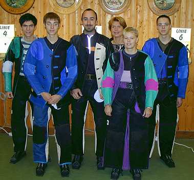 Ein spannender Wettkampf V.l.: Hans Hettmansperger, Stephan Schölch, Patrick Joho, Ersatzschützin Kerstin Liebsch, Nicole Rohm und Friedrich Schölch. (Foto: privat)(bro) (fo) Der Schützenverein Eberbach war diesmal der Gastgeber der vier besten Mannschaften der vergangenen Oberligarunde. Am Sonntag trafen sich die Mannschaften aus Wieblingen, Königsbach, Bauerbach sowie die Heimmannschaft zum Start in die neue Oberligarunde des BSV. Die Oberliga ist die höchste Klasse im Badischen Sportschützenverband, darüber gibt es nur noch die Regionalliga Süd-West der Landesverbände Baden, Pfalz, Saarland, Südbaden und Württemberg sowie die zweigeteilte Bundesliga Nord und Süd. Bei der Leistungsdichte der oberen Mannschaften war man sich bewusst, dass es sehr knappe Wettkämpfe geben würde, und man auch etwas Glück braucht, um bestehen zu können. Den ersten Wettkampf bestritt Eberbachs erste Mannschaft mit den Schützen Friedrich Schölch, Stephan Schölch, Patrick Joho und Hans Hettmansperger sowie der Schützin Nicole Rohm gegen die SG Wieblingen, die zwei Schützinnen in ihrer Mannschaft hatten. Der an eins gesetzte Friedrich Schölch hatte bis zur Hälfte der 40 Wettkampfschüsse einen Ring Vorsprung, den er aber in einer schwachen dritten Serie vergab und seinen Vergleich knapp mit 383:385 Ringen verlor. Sein Bruder Stephan machte es genau umgekehrt, er holte in der dritten Serie (99 Ringe) einen Ring Rückstand auf und gewann mit 388:383 Ringen. Auch Patrick Joho hatte bis zur Hälfte einen einen Rückstand von einem Ring, den er ebenfalls in der dritten Zehnerserie mit 96:93 Ringen zu seinem Vorteil nutzte und den zweiten Einzelpunkt für Eberbach mit 376:374 Ringen erkämpfte. Hans Hettmansperger hatte bis zur Hälfte seinen Gegner klar im Griff, sechs Ringe Vorsprung ließen auf einen Punktgewinn hoffen. Doch ein unerklärlicher Einbruch in seiner dritten Serie machten die Hoffnung zunichte, und er musste seinen Punkt mit 367:378 Ringen abgeben. Die Paarung fünf musste nun die Entscheidung bringen. Nicole Rohm hatte es mit einem sehr wechselhaften Schützen zu tun, der Einzelserien zwischen 97 und 88 Ringen aufzuweisen hatte. Aber ihr konzentriertes und kämpferisches Schießen brachten ihr mit 376:369 Ringen den zum Gesamtsieg erhofften Punkt. Der Wettkampf zwischen dem SSV Eberbach I und der SG Wieblingen I endete mit 3:2 Einzelpunkten, was gleichzeitig zwei Mannschaftspunkte einbrachte.