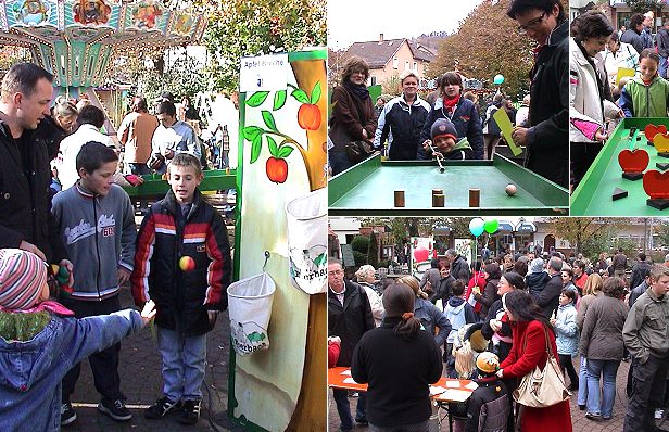 Altbewährte Spielstationen wie beispielsweise Apfel-Billard, Apfel-Breche, Schießen auf eine "Apfeltorwand" und ein Bobby-Car-Parcours wurden auf dem Lindenplatz von etwa 20 Mitgliedern der Eberbacher Werbegemeinschaft (EWG) aufgebaut und während des ganzen Nachmittages betreut.