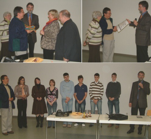 Delegation aus Ecuador besuchte katholische Partnergemeinden in Eberbach Padre Carlos Armijos (2.v.li.) bedankte sich bei den Mitbegründern der Partnerschaft mit La Concordia stellvertretend bei Elisabeth Baumbusch (2.v.re.) und Friedbert Dörfler (re.). Bernhard Schell überreichte dem Gast aus Ecuador einen Geldbetrag der Eberbacher Pfarrgemeinden mit dem die Ausstattung der Schule in La Concordia weiter verbessert werden soll. Links auf dem Bild Alexandra Toepsch, langjährige Begleiterin der Eberbacher in der Partnerschaft mit Ecuador stellte sich am Wochenende als Dolmetscherin zur Verfügung. (Bild unten) Für den großen Einsatz der Sternsinger(Innen) erhielten einige "Altgediente" stellvertretend eine Erinnerungsplakette mit Motiven aus La Concordia. (Fotos:Wörner)(tw) Am vergangenen Wochenende besuchte Pater Carlos Armijos, Pfarrer in La Concordia zusammen mit zwei Laien-Brüdern, Fernand Mercier und Andre Comont die Katholischen Gemeinden in Eberbach. Eine Reise von Ecuador zum Stammhaus der "Kongregation von den Heiligsten Herzen Jesu und Mariä" in Paris, dem Orden dem Pater Carlos und seine Begleiter angehören, bot für sie die Gelegenheit auch einmal Eberbach zu besuchen.