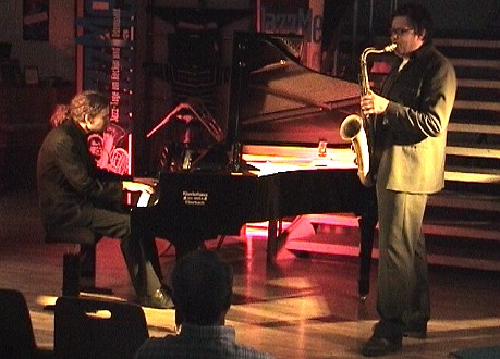 Schon 2005 hatte Rainer Böhm mit dem Quintett "L 14,16" die Besucher im Modegeschäft begeistert. In Absprache mit Johannes Enders konnte er sich dieses Mal die Zeit nehmen, seine Tastenfantasien auszuleben. Dabei ist Böhm ein typischer Grenzgänger irgendwo zwischen den Sphären des Modern Jazz und einer individuell gearteten Neoromantik. Feinste Differenzierung im Anschlag, organische Übergänge und ein wohl austarierter Pedaleinsatz zeichnen den Pianisten von Format aus. Eskapaden waren selten, spannende pianistische Gedankenreisen dagegen angesagt. So fand sich nicht nur das Publikum, sondern oft auch Johannes Enders in der Rolle des konzentrierten Zuhörers wieder. Dabei hatte der Mann mit dem patinierten Saxophon keine Probleme, sich auch nach längerer Abstinenz passgenau ins Getümmel zu stürzen, den Rhythmus leise mitzuklappern oder Unisonoläufe auch dann zusammen mit dem Klavier absolut synchron zu blasen, wenn das Tempo eigentlich nur von Pianisten zu bewältigen war.