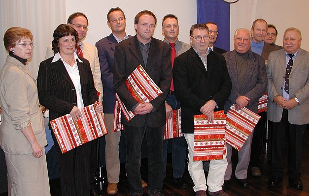Ehrenamtliche Helfer im Rathaus ausgezeichnet Die anwesenden Geehrten mit Giesela Fleck (l.) und Dieter Jeitner (r.)vom Sportausschuss der Vereine in Eberbach (Foto:Claussen)(jc) Traditionell werden im Rahmen der städtischen Sportlerehrung (sh.sep.Bericht)auch langjährige ehrenamtliche Helfer in ihren Vereinen vom Sportausschuss der Eberbacher Vereine ausgezeichnet. In diesem Jahr wurden Personen geehrt, die mehr als 20 Jahre überwiegend im Bereich Schieds- und Kampfrichter, Zeitnehmer oder ähnliches ehrenamtlich für einen Verein tätig waren oder noch sind.