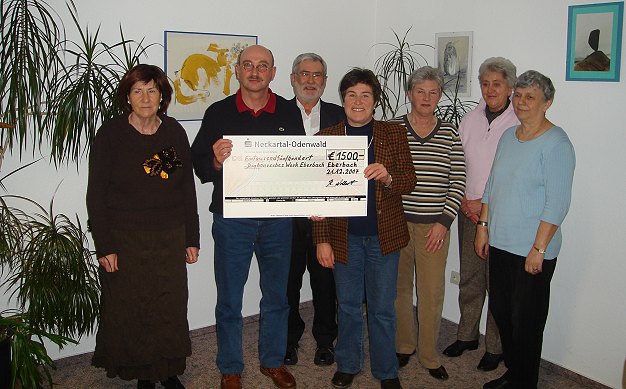 Die Schere zwischen Mangel und Überfluss schließen immer wieder Menschen, auch Menschen in und für Eberbach, die sich für andere einsetzen. Mit einer Scheckübergabe über 1.500 Euro an das Diakonische Werk gab heute das Ehepaar Elsbeth und Reinhard Nollert ein Beispiel dafür. Dieses Geld wird ohne Abzug für jene verwendet, ohne Blick auf die Konfession, die in Not geraten sind, wenn die Hilfe der Behörden stockt oder nicht greifen kann, für die Armen in der Gemeinde. Ob für Bekleidung, Zuzahlungen für Medikamente oder einfach mal ein dringend benötigtes Haushaltsgerät für eine behinderte Person. - Dabei wird sehr genau die Fallsituation im Gespräch geprüft.