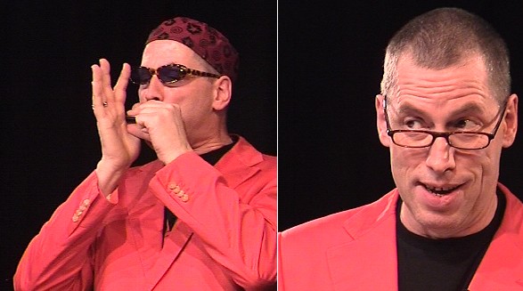 Wortakrobatik und treffsichere Ironie (Fotos:C.Richter)(hr) Gut zwei Stunden kabarettistische Unterhaltung bot Thomas C. Breuer am Freitagabend auf der Kleinkunstbühne im Kulturlabor / Galerie Artgerecht in Eberbach. Der Rottweiler mit Biss, der im November 2007 sein 30-jähriges Bühnenjubiläum feiern konnte, war heute vor genau drei Jahren schon einmal beim Kulturlabor zu Gast (wir berichteten). In seinem aktuellen Programm "Pfeffer und Salsa" tischte Breuer eine scharfe Jubiläumsmischung aus alten und neuen Texten, Gedichten, Raps und Liedern auf.
