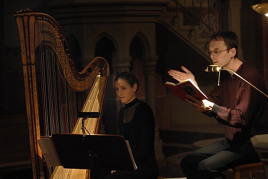 Besonders an der Lesung ist der fein abgestimmte Dialog mit Bettina Linck an der Konzertharfe. Die Musik wird zur eigenständigen Interpretin der Geschichten. Text und Musik ergänzen sich, erweitern sich und deuten sich neu aus. Bettina Linck spielt Stücke aus vier Jahrhunderten, von Klassik bis Jazz, unter anderem von Alphonse Hasselmans, Georg Friedrich Händel, Gabriel Fauré und Pearl Chertok. Die Konzertharfenistin Bettina Linck von der Musikhochschule Würzburg tritt solistisch, in verschiedenen Kammermusikbesetzungen und mit Orchester auf, unter anderem in der Alten Oper Frankfurt. Mit Georg Magirius zusammen hat sie mehrfach Lesungen gestaltet, etwa auf dem Deutschen Evangelischen Kirchentag und im Hörfunk.