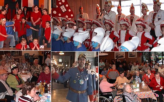 Fastnachter prunkten für Senioren Links oben und unten die "Eulen"-Fastnacht im Rockenauer Seniorenstift, rechts daneben die "Kuckucke" Im Dr.-Schmeißer-Stift. (Fotos:C.Richter)(cr) In der heißen Phase der Faschingszeit werden in Eberbach auch die alten Menschen von den Karnevalvereinen nicht vergessen.