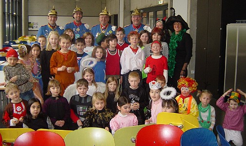 Als besonderer Höhepunkt dieser Faschingsparty - alle Kinder durften natürlich verkleidet erscheinen - kamen vier "Büttel" der Karnevalgesellschaft Kuckuck, verschenkten zahlreiche Chips und Bonbons und heizten die Stimmung noch einmal kräftig mit an. Für ein buntes Buffet sorgten die Eltern der anwesenden Kinder.