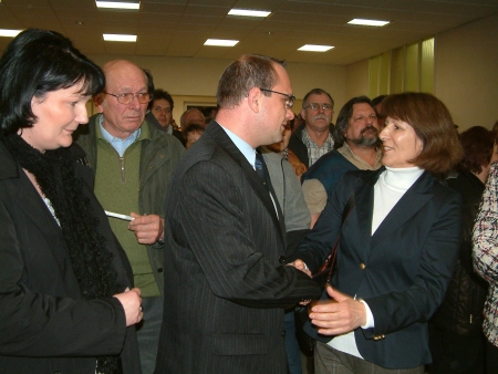 Klarer Wahlsieg für Jan Frey mit 927 Stimmen Als eine der ersten gratulierte CDU-Landtagsabgeordnete Elke Brunnemer Jan Frey zu seiner Wahl.(Foto:Wörner)(tw) Für manch einen überraschend, konnte heute der 36-jährige Diplom-Verwaltungswirt (FH) Jan Frey schon im ersten Wahlgang die Bürgermeisterwahlen in Schönbrunn für sich entscheiden. Nach dem Schließen der Wahllokale um 18 Uhr konnte der Leiter des Wahlausschusses und amtierende Bürgermeister Roland Schilling bereits um 18.52 Uhr das vorläufige amtliche Wahlergebnis verkünden. 54,82 Prozent der Wähler hatten für Frey gestimmt. 23,18 Prozent der Stimmen erhielt Patrick Poser und 21,47 Prozent Wilfried Kappel. Die Wahlbeteiligung lag bei 71,56 Prozent.