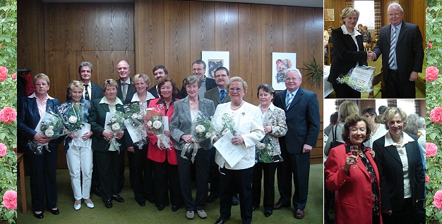 Mit dem Überreichen von Rosen wurden besonders geehrt für 25 Jahre Tätigkeit Waltraud Henk und Karin Wild, die von Anfang an dabei ist, für 20 Jahre Dienst am Nächsten Gerda Debo und Ursula Lischer sowie für 15 Jahre Wirken Hildegard Krapf. Auch Rosen für Maria Renger, der stellvertretenden Leiterin, überreichte man für fünf Jahre Einsatz, ebenso für fünf Jahre Tätigkeit an Ingrid Gleinig und Hannelore Hock.