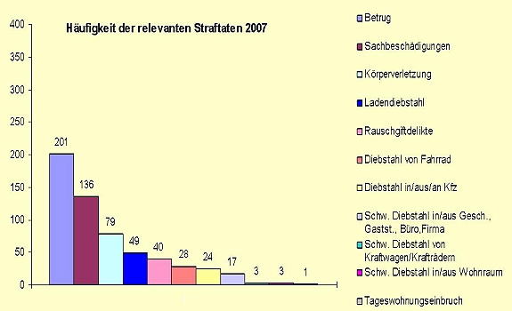 Vernetzte Kriminalprävention zeigt Erfolge (Grafik:Polizei)(cr) Exakt 900 Straftaten registrierte im vergangenen Jahr die Eberbacher Polizei in ihrem Revierbereich. Das sind zwar 20 Prozent weniger als im Jahr 2006. Die Gesamtzahl entspricht aber in etwa dem langjährigen Mittelwert im Bereich Eberbach.
