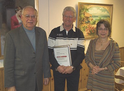 Rückblick auf ein ereignisreiches Chorjahr – Franz Emig für 50 Jahre Singen im Chor geehrt Für 50 Jahre Chorgesang wurde Franz Emig (Mitte) geehrt, hier zusammen mit MGV-Vorsitzendem Eckart Sprenger und Chorleiterin Karin Conrath. (Foto:A. Held)(ag) (ah) Die Jahreshauptversammlung des MGV Liederkranz 1845 e. V. Eberbach am 4. März, im Hotel Krone Post, bot nicht nur Anlass zum Rückblick und Ausblick, sondern auch den Rahmen, um eine Ehrung aus dem vergangenen Jahr nachzuholen. - Seit 50 Jahren hat sich Franz Emig dem Chorgesang verschrieben: ab 1975 beim MGV Liederkranz, zuvor in Waldmichelbach. Nun konnte er dafür vom MGV-Vorsitzenden Eckart Sprenger eine Urkunde sowie die goldene Ehrennadel des deutschen Chorverbandes entgegennehmen.
