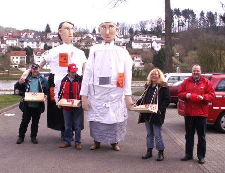 (bro) (str) "Arm trotz Arbeit? Für einen gesetzlichen Mindestlohn." – unter diesem Motto führten Ende März die DGB-Ortsverbände Hirschhorn, Eberbach und die Gewerkschaft Nahrung-Genuss-Gaststätten (NGG) - Region Darmstadt-Mainz - in Hirschhorn eine Straßenaktion für einen gesetzlichen Mindestlohn durch. An die PassantInnen in der Hauptstraße und vor den Geschäften in der Hainbrunner Straße wurden Infomaterial und Mindestlohn-Schokoladen-Euros verteilt. In den Gesprächen erhielten die Gewerkschafterinnen und Gewerkschafter breite Unterstützung für ihre Forderung nach einem gesetzlichen Mindestlohn: "Wer Vollzeit arbeitet, muss mit seiner Familien menschenwürdig leben können."
