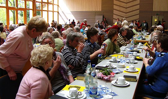 Nachdem Kindergartenkinder Tänze und Lieder zum Frühling präsentiert hatten, hielt die Islamwissenschaftlerin Dr. Gabriele Berrer–Wallbrecht einen Vortrag mit dem Ziel, den Islam verstehen zu helfen und zu unterscheiden zwischen Islam und Islamismus. Letzterer sei nichts anderes als die schlimme Pervertierung einer Weltreligion und eine Gefahr für den Weltfrieden. In Deutschland sind etwa 80 Prozent der Muslime Türken. Im Jahr 1924 hatte Mustafa Kemal Atatürk, nach dem Vorbild der Schweizer Verfassung, den neuen türkischen Staat konzipiert. Das bedeutete Trennung von Kirche und Staat. Schleier, Kopftuch, Turban und Fez wurden verboten, und die lateinische Schrift wurde eingeführt. Unter der heutigen Regierung ist dieses Kopftuchverbot aber schon wieder aufgeweicht. In 54 Ländern der Welt sei der Islam heute Staatsreligion. Die weltweite Verbreitung des Islam erklärte die Referentin aus der Biografie Mohammeds, der als Händler entlang der "Weihrauchstraße" mit der ganzen im 7. Jahrhundert bekannten Welt in Kontakt gekommen sei. Im islamischen Gottesbild – dargestellt in den 99 Namen Allahs – sei der "barmherzige Gott" vorherrschend, erklärte die Referentin. Als überwältigend beschrieb sie die Gastfreundschaft, die sie in den muslimischen Ländern erlebt habe. Da fast jedes arabische Wort zwei Bedeutungen habe, falle es den Islamisten leicht, Koransuren zu entstellen und zu verdrehen. Um die richtige Auslegung des Koran bemühen sich vier große Rechtsschulen. Die federführende Hochschule in Kairo lasse sich in den letzten Jahren aber auch immer mehr von den Islamisten unter Druck setzen. Nachdem das vorletzte Gutachten die Genitalverstümmelung der Frauen für verboten erklärt habe, sei sie nach dem neuesten Gutachten wieder "geduldet". Mohammed habe sich sehr für die Rechte der Frauen eingesetzt. Das angebliche Recht, die eigene Frau zu schlagen, beruhe auf einer Missdeutung des Koran. Weder Jungfernschaft noch Zwangsverheiratung, Kopftuchpflicht oder die Unterordnung der Frauen sei aus dem Koran abzuleiten. Während bei Mohammed vom Bedecken des Schmuckes, der "Aussteuer" der Beduinenfrauen, eine Frage der Vornehmheit und das Bedecken des Kopfes in der Wüste eine Frage des Klimas und des Sandes gewesen sei, bezeichnen Islamisten als "Schmuck" heute das Kopfhaar der Frau und machten aus dem Kopftuch eine Frage der Ethik und Moral. Humanismus, Aufklärung, Demokratie und Menschenrechte müssten in einer christlich orientierten Welt viel bewusster verteidigt werden, forderte die Referentin. Christen in der Türkei seien verfolgt, während Islamisten die Religionsfreiheit in Europa missbrauchten. "Toleranz ist keine Einbahnstraße", gab sie den Frauen mit auf den Weg.