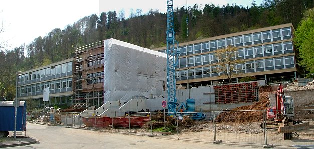 Lehrertoiletten bekommen Vorrang - Schallschutzmaßnahmen werden erneut beraten (Foto:Richter)(hr) Mit dem Umbau und der Erweiterung des Hohenstaufen-Gymnasiums befasste sich gestern abermals der Eberbacher Gemeinderat. Weil durch die Bauarbeiten einige Lehrertoiletten weggefallen sind, kommt es besonders in den pausenbedingten "Stosszeiten" zu Engpässen in den verbliebenen Sanitäranlagen. Dem soll nun durch einen vorgezogenen Ausbau von Schülertoiletten im 1. Obergeschoss abgeholfen werden. Diese sollen nach den Sommerferien 2008 fertig sein und für eine Entspannung der prekären Lage sorgen. Die Schule selbst hatte in einem Schreiben im März angeregt, vorübergehend einen Toilettenwagen aufzustellen, was aber Kosten von mindestens 20.000 Euro verursacht hätte.