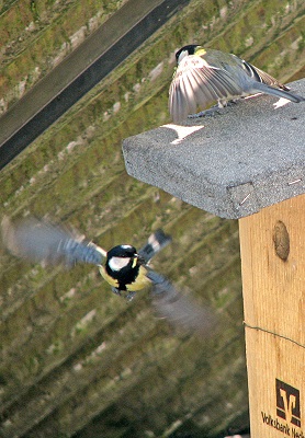 Ein Weihnachtsgeschenk an die Vogelwelt (Foto: privat)(bro) (hs) Dass die Volksbank Neckartal im Rahmen ihres KUSS- oder KulturUmweltSozialSponsoring-Förderkonzeptes dauerhaft, transparent und gezielt Menschen und Institutionen in der Heimat erfreut, ist bekannt. Dass sich aber auch die heimische Vogelwelt an den von Bank und Mitarbeitern in Wäldern und Gärten an 250 Plätzen ausgehängten Nistkästen erfreut, war zwar anzunehmen, aber kaum zu beweisen. Dies ist dieser Tage erstmals einem aufmerksamen Beobachter gelungen: Kenneth Weidlich hat für die Volksbank einen "Schnappschuss" in seinem Garten gemacht, der eindeutig belegt: Die Aktion von Bankvorstand und Mitarbeitern, die zugunsten von Natur und Umwelt je einen Nistkasten als "Weihnachtsgeschenk an die Vogelwelt" spendeten, wird dazu beitragen, den singenden und zwitschernden Nachwuchs in diesem Jahr besonders zu fördern.