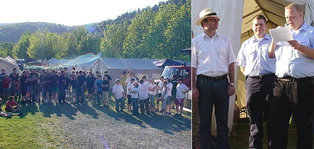 Heute gegen Abend wurde das Lager auf dem Fetenplatz in der Au durch den Schirmherrn, Bürgermeister Bernhard Martin, eröffnet. Rund 200 junge Feuerwehrmitglieder aus 13 Wehren der Unterkreise Neckargemünd und Eberbach nehmen teil. Die Jugendfeuerwehr Eberbach unter der Leitung von Thomas Weber hat die Organisation des Lagers übernommen.