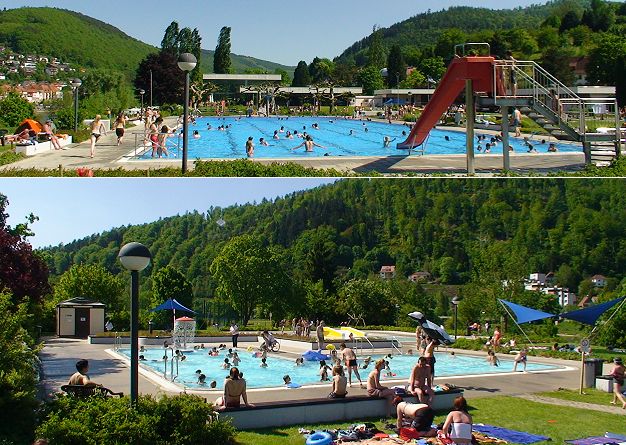 Optimale Wetterbedingungen zum Saisonstart (Fotos:Richter)(hr) Einen fulminanten Start in die neue Saison legte heute bei sommerlichem Wetter das Eberbacher Freibad hin. Mehr als 1.500 große und kleine Badegäste fanden den Weg in die Au und erfrischten sich im großen Becken (Bild oben) oder im Kinderbadebereich (Bild unten).