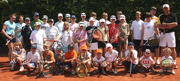 Pfingstferiencamp des TC Blau-Weiß (Foto: privat)(bro) (jsch) Zur Vorbereitung auf die kommende Wettkampfrunde veranstaltete der Eberbacher Tennisclub für Kinder bis 14 Jahre in der Woche nach Pfingsten ein Tenniscamp. Unter ihrem neuen Trainer Matthias Voigt und seinem Team trainierten 31 Jungen und Mädchen ihre Kondition und Koordination und vor allem die richtige Technik. Aber auch Taktisches, Match und Teamverhalten durften nicht zu kurz kommen. Von morgens 9.30 Uhr bis mittags 14.30 mit einer gemeinsamen Mittagspause waren alle auf den verschiedenen Stationen im Einsatz und können nun gut gerüstet in die Saison 2008 starten.