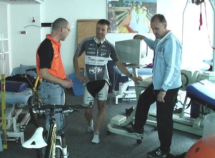 Michael Kochendörfer bereitet sich auf die MTB EM vor (Foto: privat)(bro) (cl) Zwei Wochen vor den MTB Europameisterschaften ließ sich Michael Kochendörfer, der letzte Woche beim 24-Stunden-Rennen in Mainz den zweiten Platz belegte, im Reha-Zentrum Neckar-Odenwald die Sitzposition auf seiner neuen Rennmaschine bestimmen.