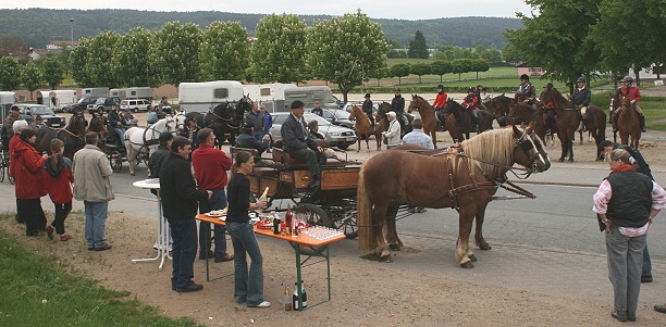 Die Reiter nahmen in zwei Abteilungen eine Strecke in Richtung Rothenberg in Angriff, während die Kutschen in Richtung Judenfriedhof und Sensbach fuhren. Natürlich durften sich alle Teilnehmer zuvor ins Gästebuch eintragen und den "Bügeltrunk" zu sich nehmen. Andreas Müller, 1. Vorsitzender des Pferdezuchtvereins, sprach das Grußwort. Die Organisation mit Ludwig Schäfer als treibender Kraft klappte reibungslos, der Erlös der Veranstaltung kommt dem Beerfeldener Reit- und Fahrverein zugute.