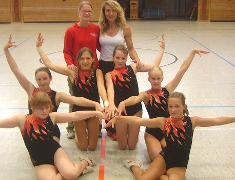 Erfolgreicher Gauligawettkampf Sabine Langhard, Ann-Kathrin Wiegel, Tamina Dengel, Sandra Hofmann, Anna-Lena Kappes und Fiona Nohe mit ihren Trainerinnen Melanie Rutz und Renate Dengel (v. li. nach hinten re.), nicht auf dem Bild Samantha Enseli. (Foto: privat) (bro) (rd) Allen Grund zur Freude hatten die Turnerinnen des TVE (Jahrgang 93/94) am letzten Freitag. Es war ihnen gelungen, sich bei ihrem zweiten Gauliga-Wettkampf KM 3 in Bammental den zweiten Platz zu sichern. Bammental ließ man hinter sich, nur Nussloch war nicht zu schlagen.