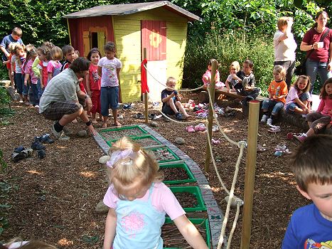 Viel Freude am neuen Sinnesweg (Foto: privat)(bro) (reg) Letzten Freitag wurde ein neu angelegter "Sinnesweg" im Außenbereich des evangelischen Kindergartens Regenbogen offiziell eingeweiht.