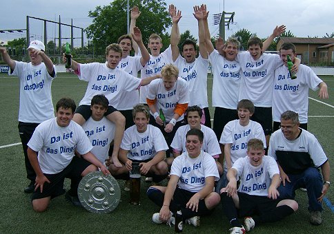 Damit spielt erstmals seit über 25 Jahren wieder eine Eberbacher A-Jugend in dieser Klasse. Nach dem Abpfiff gestern gab es kein Halten mehr: Es gab Sektduschen für Spieler und Trainer, Aufstiegsshirts und (ausnahmsweise) auch alkoholische Getränke danach.