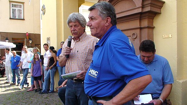 Auf dem Alten Markt stellte MSC-Vorsitzender Heinz Dillmann die Fahrzeuge und Fahrerteams vor. Stadtrat Günter Wiedemer hatte in Vertretung von Bürgermeister Bernhard Martin die Zuschauer begrüßt und dem MSC für die Durchführung der Rallye gedankt.
