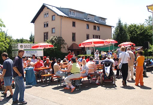 Im Erlebnisparcours unter den kühlen Linden konnten die Gäste ihre Kletterkünste unter der fachkundigen Anleitung von Mitarbeitern der Schwarzbach Schule beweisen, und ein Luftballonwettbewerb wurde besonders gerne von Kindern und Bewohnern der Johannes-Anstalten angenommen. Mit einer Lamaführung bereicherte das "Abenteuerland" der "Villa Bröckelstein" das Programm, und im nahen Klangzelt genossen die Gäste ein interessantes Experimentierfeld mit allerhand selbstgebastelten Musikinstrumenten.