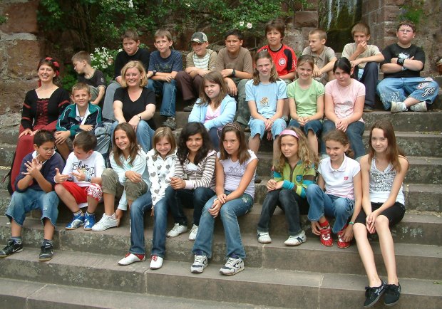 Über die Wolfschlucht zum Zwingenberger Schloss Die Klasse 4c der Steige Grundschule mit ihrer Lehrerin Beate Reichert und Burgfrau Patrizia. (Foto: Wörner)(tw) (sts4c )Die Klasse 4c der Steige Grundschule verlebte am vergangenen Donnerstag einen aufregenden Schultag. Klassenlehrerin Beate Reichert hatte sich zum Grundschulabschluss etwas ganz Besonderes einfallen lassen.