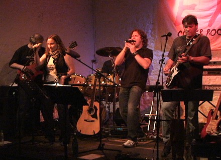 Wetteraussichten zwangen zum Umzug (Foto:Richter)(hr) In der Galerie Artgerecht statt im Hof am Pulverturm fand am vergangenen Freitagabend das Konzert mit der Cover-Rockgruppe "Ex" statt. Eigentlich hätte die Band unter freiem Himmel auftreten sollen, aber die unsichere Wetterlage veranlasste die Veranstalter vom Kulturlabor zur Verlegung in die Galerieräume.