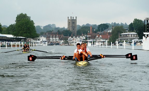 Simon Schiml bei einer der ältesten Regatten der Welt Im Vordergrund der Mainzer Vierer mit Simon Schiml auf der zweiten Bootsposition. (Foto: privat)(bro) (sch) Der für Mainz startende Eberbacher Ruderer Simon Schiml nahm an der weltberühmten Henley Regatta teil. Dies ist eine der ältesten Regatten der Welt und findet in einem östlichen Vorort von London auf der Themse statt. Die Themse ist dort noch so schmal, dass immer nur zwei Boote starten können. Gefahren wird deshalb vor schöner Kulisse im k.o. Modus. Der Mainzer Vierer mit Simon Schiml fand sich so bei 35 Meldungen immerhin unter den letzten 16 Booten, bevor für die Mannschaft Endstation war.